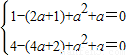 即方程x2-(2a+1)x+a2+a=0的两根为1、2,