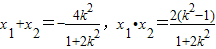 ,得(1+2k2)x2+4k2x+2(k2-1)=0,