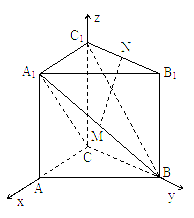 (湖南省●2010年月考)如图,在直三棱柱ABC-A1B1C1中,AC⊥BC,AC=BC=CC1,M、N分别是A1B、B1C1的中点.