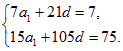 设{an}为等差数列,Sn为数列{an}的前n项和,已知S7=7,S15=75,Tn为数列{