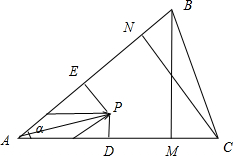 解:画出图形如图:设∠BAC=α,作PD⊥AC于D,BM⊥AC于M,