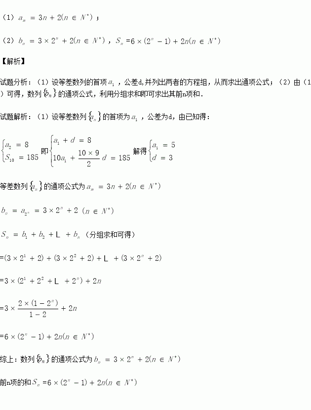 (本小题满分12分)已知等差数列的第二项为8,前10项和为185.