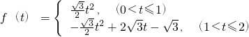 如图,△OAB是边长为2的正三角形,记△OAB位于直线x=t(0<t≤2)左侧的图形的面积f(t),则函数f(t)的解析式为:________.