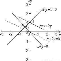 当目标函数过O(0,0)时t有最小值0,当目标函数过A(0,1)时t有最大值2,