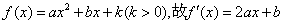 设函数f(x)=ax2+bx+k(k>0)在x=0处取得极值,且曲线y=f(x)在点(1,f(1))处的切线垂直于直线x+2y+1=0,