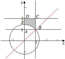 即$\left\{\begin{array}{l}{a≤b}\\{{a}^{2}+{b}^{2}≥2}\end{array}\right.$,或$\left\{\begin{array}{l}{a≥b}\\{{a}^{2}+{b}^{2}≤2}\end{array}\right.$,对应的区域如图阴影部分