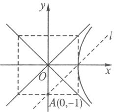 借助图形分析,当l与渐近线y=x平行时,仅与右支有一个交点,不合题意.
