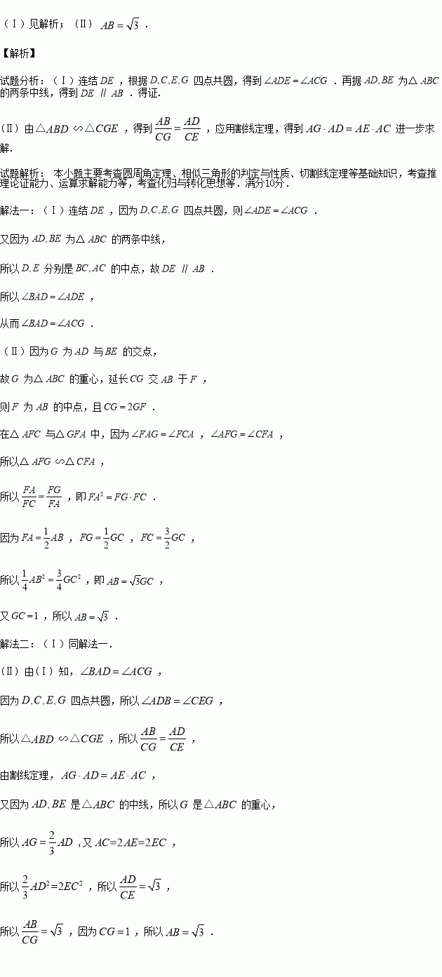 如图,的两条中线和相交于点,且四点共圆.