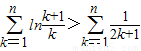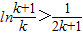 (法二)可用数学归纳法予以证明.当n=1时,ln(n+1)=ln2,3ln2=ln8>1⇒