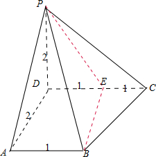 解答:解:由三视图可知:该几何体是一个四棱锥,一条侧棱垂直于底面,其长为2,底面是一个直角梯形,上下底分别为1,2,直角腰为2.