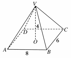 由三视图可知该几何体是一个底面边长分别为6和8的矩形,高为4的四棱锥.设底面矩形为ABCD.如图所示.