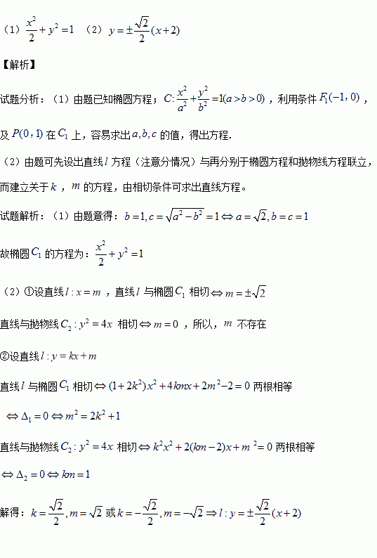 (2)设直线同时与椭圆和抛物线相切,求直线的方程