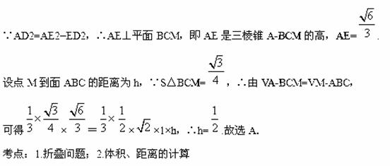 在△ABC 中,∠C =90°,∠B =30°,AC=1,M 为 AB 中点,将△ACM 沿 CM 折起,使 A、