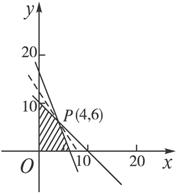 画可行域如下图,把z看作常数,平行直线系z=100%x+50%y过点P时横截距z最大,最大值z=4+