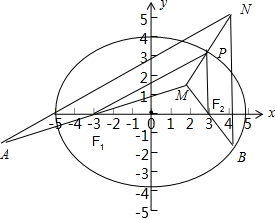 解:由题意如图:MN的中点为P,连结PF1,PF2,可得AN=2PF1,BN=2PF2,P的椭圆时,由椭圆C:$\frac{{x}^{2}}{25}$+$\frac{{y}^{2}}{16}$=1,可得2a=10,|AN|+|BN|=20.