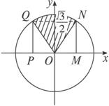 对应的角的终边落在阴影部分内,所以不等式的解集在[0,2π)内所对应角的范围是[