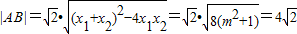 设A(x1,y1),B(x2,y2),则x1+x2=2m,x1x2=-(m2+2)
