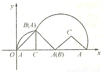 解:作出点A的轨迹中相邻两个零点间的图象,如图所示.其轨迹为两段圆弧,一段是以C为圆心,CA为半径的四分之一圆弧;一段是以B为圆心,BA为半径,圆心角为