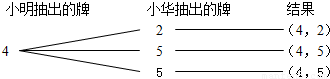 СÃ÷¡¢Ð¡»ªÓÃ4ÕÅÆË¿ËÅÆ£¨·Ö±ðÊǺÚÌÒ2¡¢ºÚÌÒ4£¬ºÚÌÒ5¡¢Ã·»¨5£©ÍæÓÎÏ·£¬ËûÃǽ«ÆË¿ËÅÆÏ´ÔȺ󣬱³Ã泯ÉÏ·ÅÔÚ×ÀÃæÉÏ£¬Ð¡Ã÷Ïȳ飬С»ªºó³é£¬³é³öµÄÅÆ²»·Å»Ø£¬¸÷³éÒ»ÕÅ£®£¨1£©ÈôСÃ÷Ç¡ºÃ³éµ½ºÚÌÒ4£»