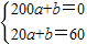 解答:解:(I) 由题意:当0≤x≤20时,v(x)=60;当20<x≤200时,设v(x)=ax+b