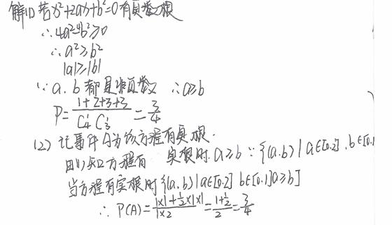 (1)若是从0,1,2,3四个数中任意取一个数,是从0,1,2三个数中任意取一个,求上述方程有实根的概率