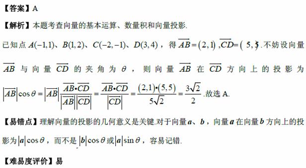 方向上的投影为( )