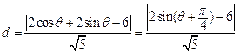 解:(1) (2)设,则到直线的距离,当,即时,。