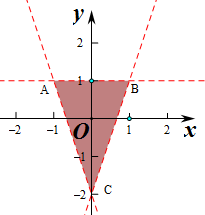 则满足$\left\{\begin{array}{l}-a-b≥1\\ a-b≥1\\ 2b≥1\end{array}\right.$或$\left\{\begin{array}{l}-a-b≤1\\ a-b≤1\\ 2b≤1\end{array}\right.$.![]()