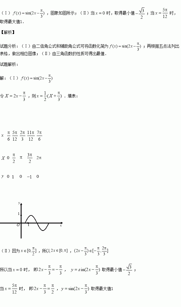 在长度为一个周期的闭区间上的简图(先在所给的表格中填上所需的数值,再画图);