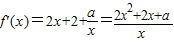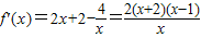 解答:解:①∵f(x)=x2+2x-4lnx(x>0)