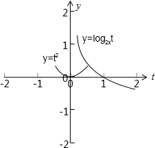 ]时,函数的图象y=t2在y=log2xt的下方,如图: