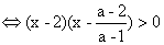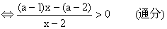 (x-2)[(a-1)x-(a-2)]>0 ① 为确定两个因式的根的大小而讨论: