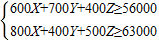 (II)根据题意得出600X+700Y+400Z≥5600,800X+400Y+500Z≥6300,再利用Z=100-X-Y,得出当且仅当2X+3=160,3X-Y=130时成立,求出X,Y,Z即可.