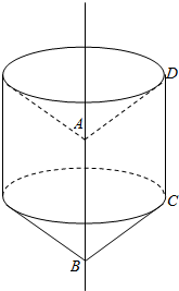 解答 解:以AB为轴,菱形ABCD绕AB旋转一周,所得的几何体如下图所示:![]()
