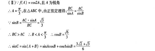 (Ⅱ)在△ABC中,AC=2,BC=3,A为锐角,且