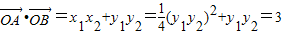 =3,可得y1y2=-6,