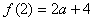 曲线y=f(x)在点(2,f(2))处的切线为y-(2a+4)= (6+a)(x-2)