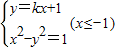 消去y得:(1-k2)x2-2kx-2=0(x≤-1),