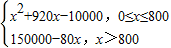 当x>800时,t=800,y=-8002+1000×800-10000-80x=150000-80x(4分)