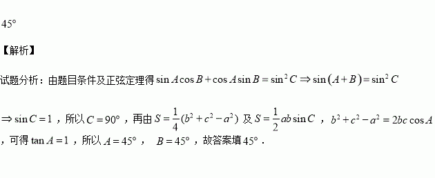 在△ABC中,角A,B,C所对的边分别为a,b,c,表示△ABC的面积,若, ,则∠B= .