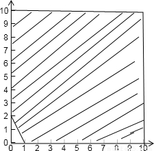 【答案】分析:在[0,10]上随机取两个实数x,y,列出x和y满足的关系式,在平面直角坐标系中做出对应的区域,利用面积之比求解即可.