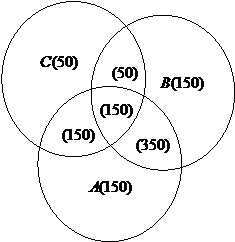 某校先后举行数理化三科竞赛,学生中至少参加一科的有:数学800人,物理700人,化学400人;至少参加两科的有:数学、物理500人,数学、化学300人,物理、化学200人;三种都参加的有150人,则参加竞赛的学生总人数是多少?