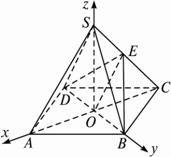以OA、OB、OS所在射线分别作为非负x轴、非负y轴、非负z轴建立空间直角坐标系.