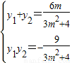 ,得(4+3m2)y2-6my-9=0,∴