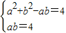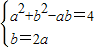 ∴由余弦定理c2=a2+b2-2abcosC得:a2+b2-ab=4,
