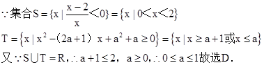 (文)已知集合S={<0},T= {x2-(2a+1)+a2+a0}(aR),则S∪T=R的充要条件是