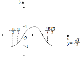 18.根据y=sinx,x∈[-$\frac{π}{2}$,$\frac{3π}{2}$]的图象,求满足sinx≥-$\frac{\sqrt{3}}{2}$的x的取值范围.分析 由条件利用y=sinx,x∈[-$\frac{π}{2}$,$\frac{3π}{2}$]的图象,求得满足sinx≥-$\frac{\sqrt{3}}{2}$的x的取值范围.