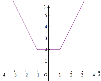 解:f(x)=|x-1|+|x+1|=$\left\{\begin{array}{l}{-2x,x<-1}\\{2,-1≤x≤1}\\{2x,x>1}\end{array}\right.$,