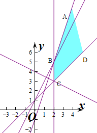 解答 解:作出不等式组对应的平面区域如图:![]()