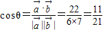 夹角的余弦值为